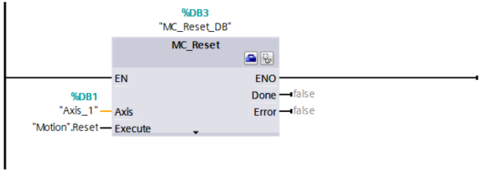 MC_Reset pozwoli na potwierdzenie błędów lub ostrzeżeń w bloku technologicznym. Natomiast MC_Home będzie prostą metodą bazowania. Wraz z wywołaniem bloku nadpiszemy aktualną pozycję na 0.