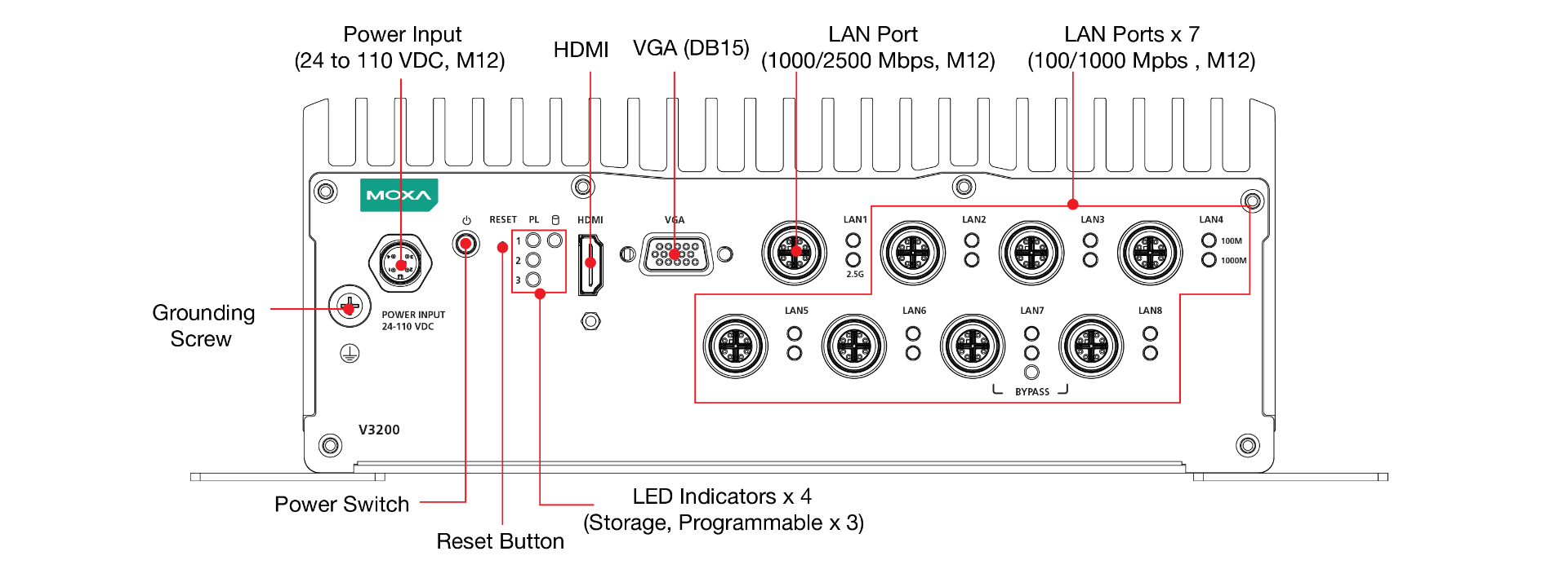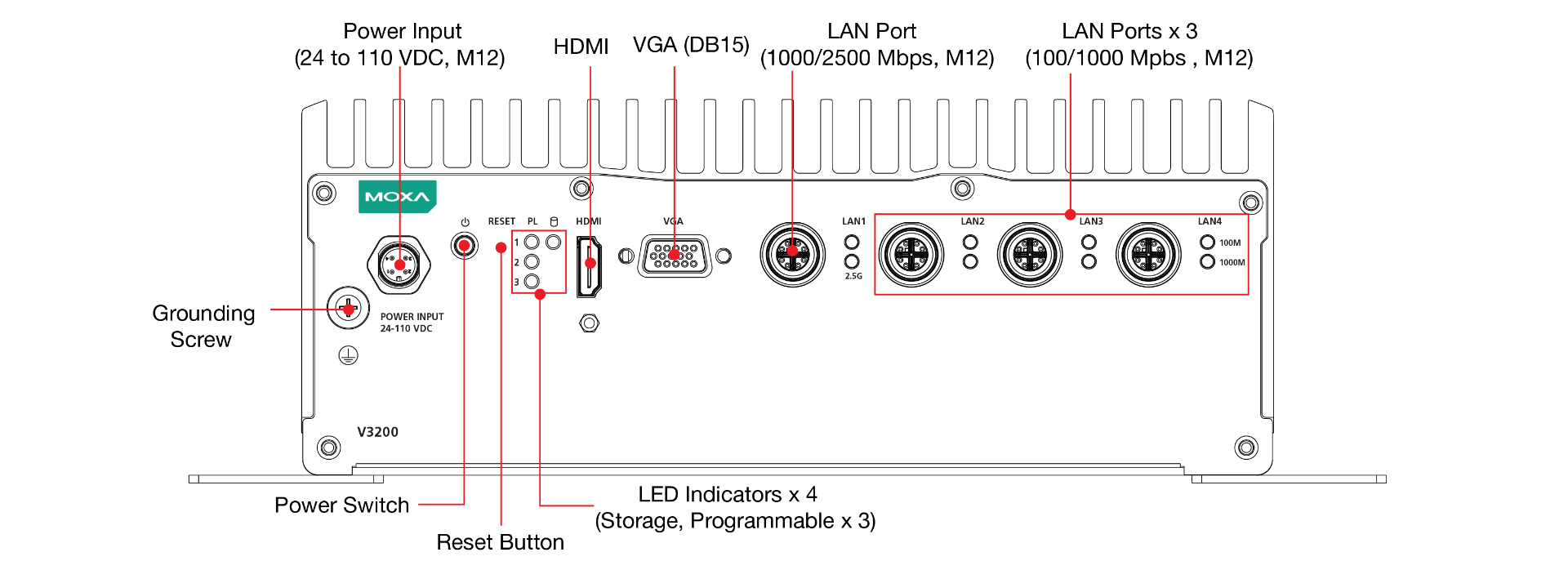 Vehicular applications require reliable connectivity. They also require clear indicators on the device that identify the status of the software. The V3200 computers come with one LTE and 6 SIM-card slots to help establish redundant LTE/Wi-Fi connections and three programmable LEDs that enable monitoring of the runtime status of software.